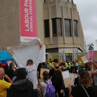 Our demonstration Saturday was a great success, we moved off from the Peace Statue in Hove and marched the short distance in full voice and blasted the venue with our words of truth, and let them know inside that we know they are a complete joke and a coin with Johnson’s rotten head on one side, and Starmer’s on the other!